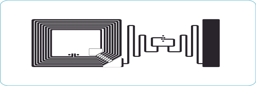 通常は二つのアンテナを近くに配置すると、お互いが干渉しあい通信距離の減衰が起こるのですが、本タグは二つのアンテナを電気的に結合させることにより、その通信距離を伸ばしております。このアンテナの設計は当社が特許取得しており、その通信能力は他の複合アンテナタグと比べ高いといえます。