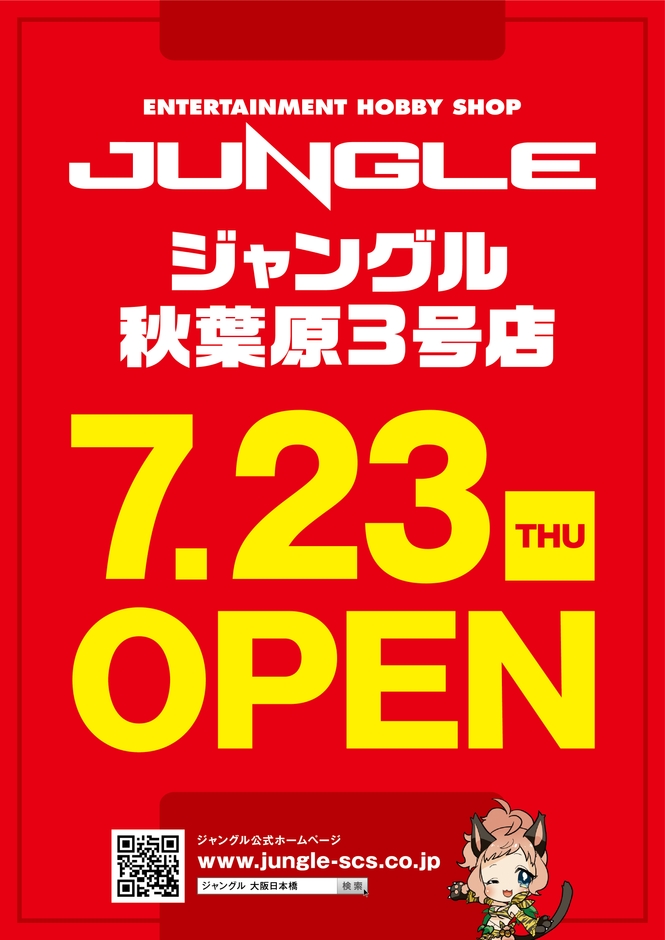2020年7月23日(木・祝)に「エンターテインメントホビーショップ ジャングル」として秋葉原エリア3店舗目となる新店舗をオープンします。