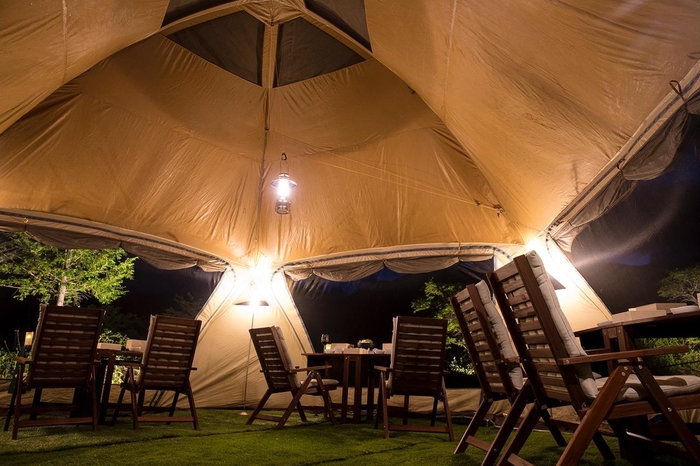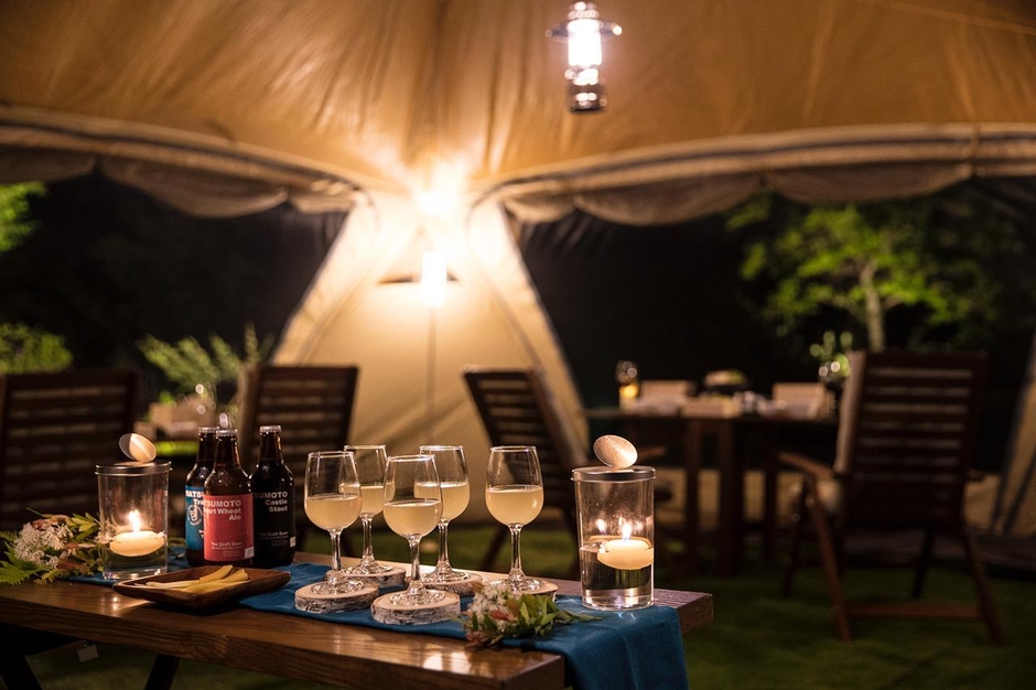 自然の中で癒され、美味しい食事とお酒を楽しみ、イベントとしての屋外レストランという厳しい環境にも関わらず高いクオリティで提供することを目標としました。自然の中で快適に食事するためのグランピング用テント、地元の食材を活かすためのメニューの考案、さらには電気自動車を活用することでプレミアムな演出と自然の音を楽しむ静寂性の両立、そして、癒しを倍増するコンシェルジュたちの対応など、お客さまが満足できる体験をデザインできたと考えています。