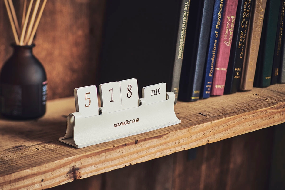 「お店の雰囲気をいつもよりリッチに出来る、革製の卓上カレンダーです。