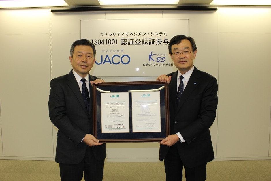 近鉄ビルサービス株式会社(本社:大阪市、代表取締役社長 内藤博行)は、本年2月25日、株式会社日本環境認証機構(JACO)においてファシリティマネジメントに関する国際規格ISO41001の認証を取得しました。