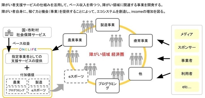 ワンライフは、「偏見のない社会を創り、障害のカタチを変える」ことをミッションに、障がい者自身が中心となった経済圏を創出することで、自立を支援し、障がいに対して偏見のない社会をつくること目標に経営しています。障がいに対する社会の見方を変えることは当然の事ながら、障がい者自身がそれぞれの個性に合わせたチャレンジを行う事で、自信と選択肢を持てるような障がい者自立支援のロールモデルを創出していくこと。これがワンライフの使命です。