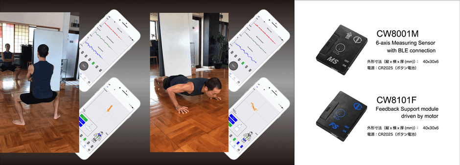 株式会社Cooperation Works(所在:京都市右京区、代表取締役:田中 寿昌)は、アプリ『CAT-b.c.s.』を使用して、測定用センサー装置(MS)から情報を取込み、トレーナーが動的な重心位置を改善するよう振動補正用の装置(FS)を装着することで、刺激による脳を経由した反応を利用し正しいバランス状態を維持しながら運動・動作を行える、薄く小型で軽量のセンサー2点を1月より受注量産を開始予定です。