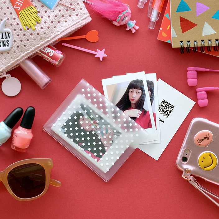 上質な厚手のマット紙を採用しているので、カードにコメントを手書きで記入し、ペンやシールでデコれば個性豊かな1枚に仕上がります。最小限の情報だけを詰め込んだ名刺は、オシャレでカワイイ写真プリントとして使えるほか、友達と交換しあったり、初対面の人に配ったり、コミュニケーションツールとしても大活躍します。トレンドのドット柄ケースを付属。