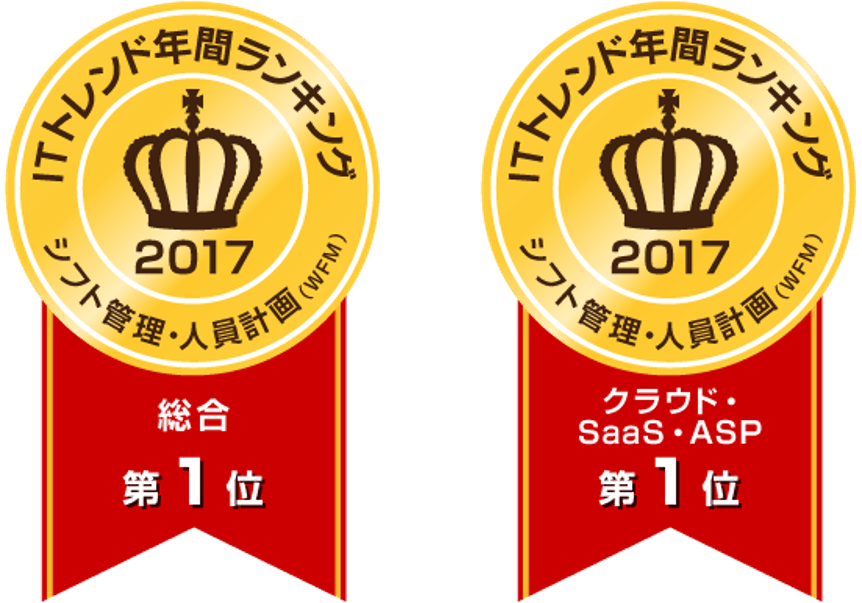 業界最大級の法人向けIT製品の比較・資料請求サイト『ITトレンド』にて、2017年のトレンドを発表する「ITトレンド年間ランキング」があります。その中の、シフト管理・人員計画(WFM)部門で総合、ならびにクラウド・SaaS・ASP部門で最もユーザーから反響が多かった製品でした。
