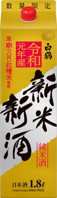 商品名 白鶴 サケパック 純米 令和元年産新米新酒 1.8L