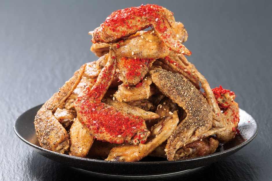 名古屋の名物料理といったら手羽先の唐揚げ。甘辛いタレに胡椒をたっぷりとかけているのが名古屋風。「レッド」は特製赤からパウダーと粗唐辛子をかけた唐辛子のうま辛味。「ブラック」は粗挽きブラックペッパーをたっぷりとかけたピリッとしたシャープな辛味。赤からオリジナルの手羽先唐揚げはクセになるおいしさです。