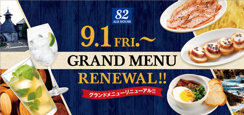 株式会社ハブ(所在地:東京都千代田区、代表取締役社長:太田 剛)が運営する『82エールハウス』は、2017年9月1日よりグランドメニューをリニューアルいたします。