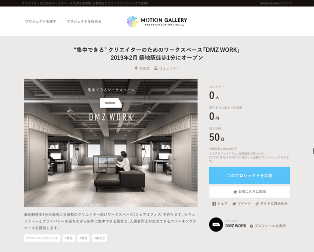 ●目的 : クリエイター特化型シェアスペース「DMZ WORK」オープン資金