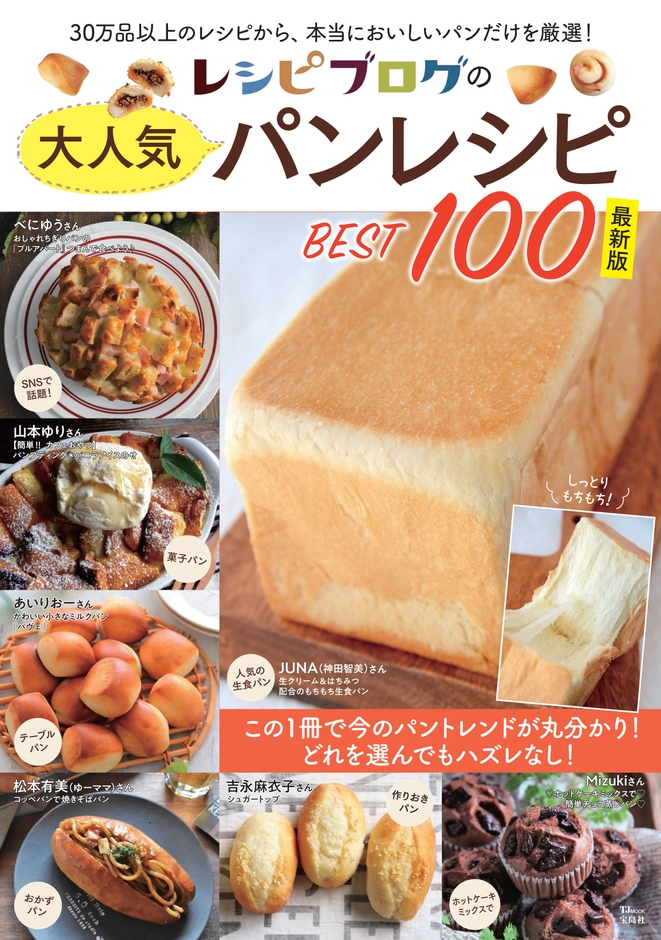 レシピブログで大人気の山本ゆりさん、Mizukiさん、ゆーママさん、Yuuさんなど人気料理ブロガーさんのパンレシピを厳選。しっとりもっちりの生食パン、流行のプルアパートブレッド、パネチキン、さらに台湾風ふわふわカステラ、作りおきパンまで、100品のレシピをご紹介しています。