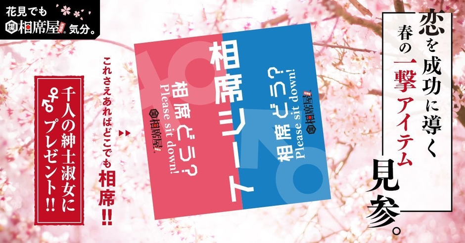 株式会社セクションエイト(所在地:東京都品川区、代表取締役社長:横山 淳司)がプロデュースする婚活応援酒場「相席屋」は、2018年3月5日(月)から「恋を成功に導く春の一撃アイテム相席レジャーシート」プレゼント企画を実施します。