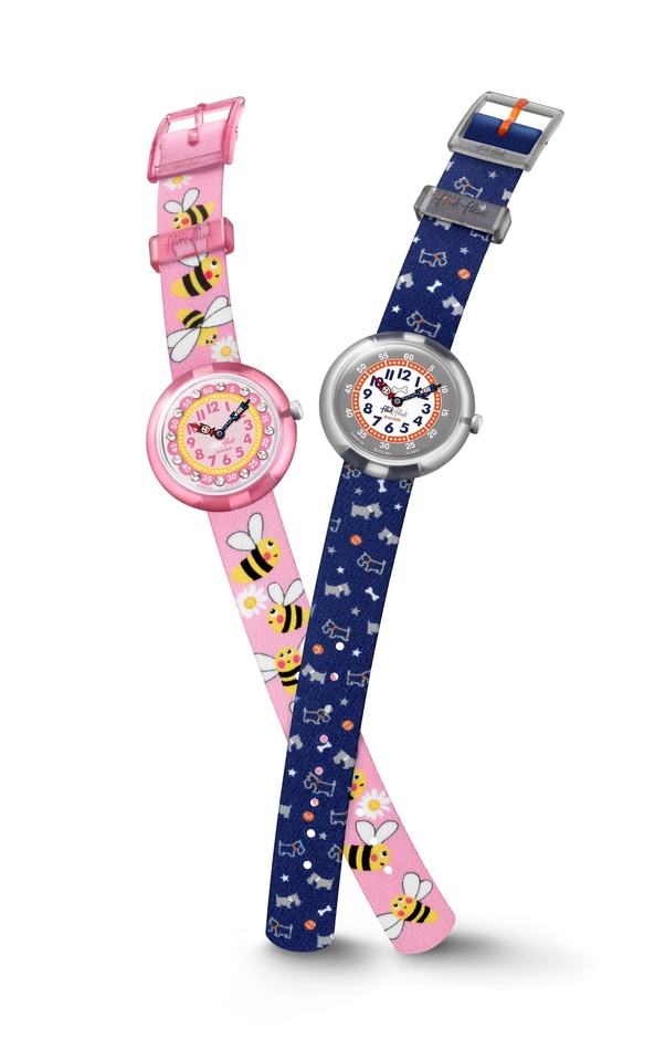 空を舞う蝶々やハチ、可愛いペットたちなどFlik Flakらしいユニークなデザインをウォッチに取り入れました。