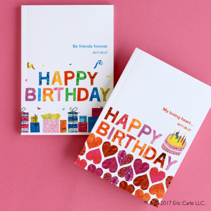 このバースデーアルバムは、大人気絵本『はらぺこあおむし』の作者、エリック・カールが描くカラフルなイラストがいっぱい。幼すぎない可愛さで、子供から大人まで楽しめるTOLOTオリジナルデザインです。思い出の写真に手書きのメッセージを添えて、大切な方へのプレゼントにお役立てください。