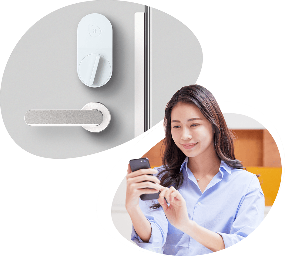 「bitlock LITE(ビットロック ライト)」とは、スマートフォンや専用ボタンから扉の鍵を開閉できる機能に加えて、ビットキーが開発した「人・時間・空間を柔軟に指定できる鍵=bitkey(ビットキー)」の機能により、非常に汎用性が高いながらも、安全な鍵の開閉を可能にしたスマートロックです。