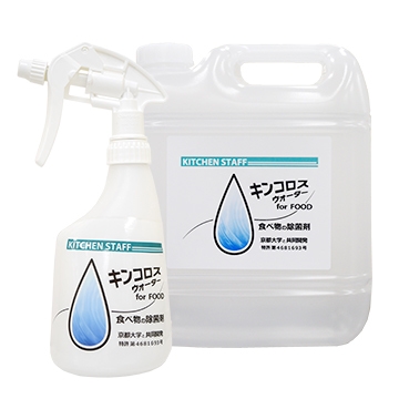そこで、厚生労働省及び大阪保健所へ確認を行った結果、2017年6月に「当社製品の配合において単品生食用鮮魚介類を除く加工食品への使用が問題ない」という見解をいただき、この結果『キンコロスウォーター』は、調理器具の他に食品にも除菌目的で“直接”添加・使用が可能となりました。