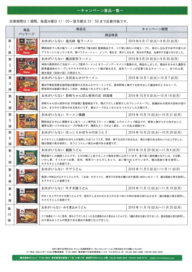 累計販売数8,000万食を突破! 「お水がいらない」シリーズ新商品を含む人気商品が勢揃い! 10週連続!新商品発売記念Webキャンペーン 9月17日(火)より開始!