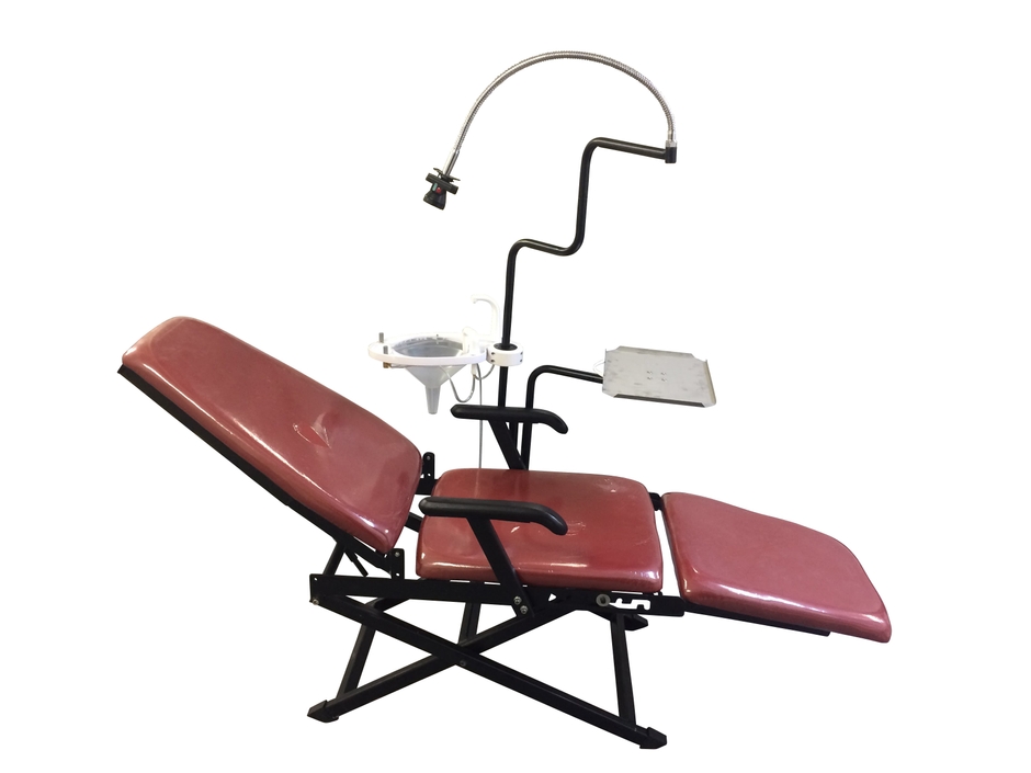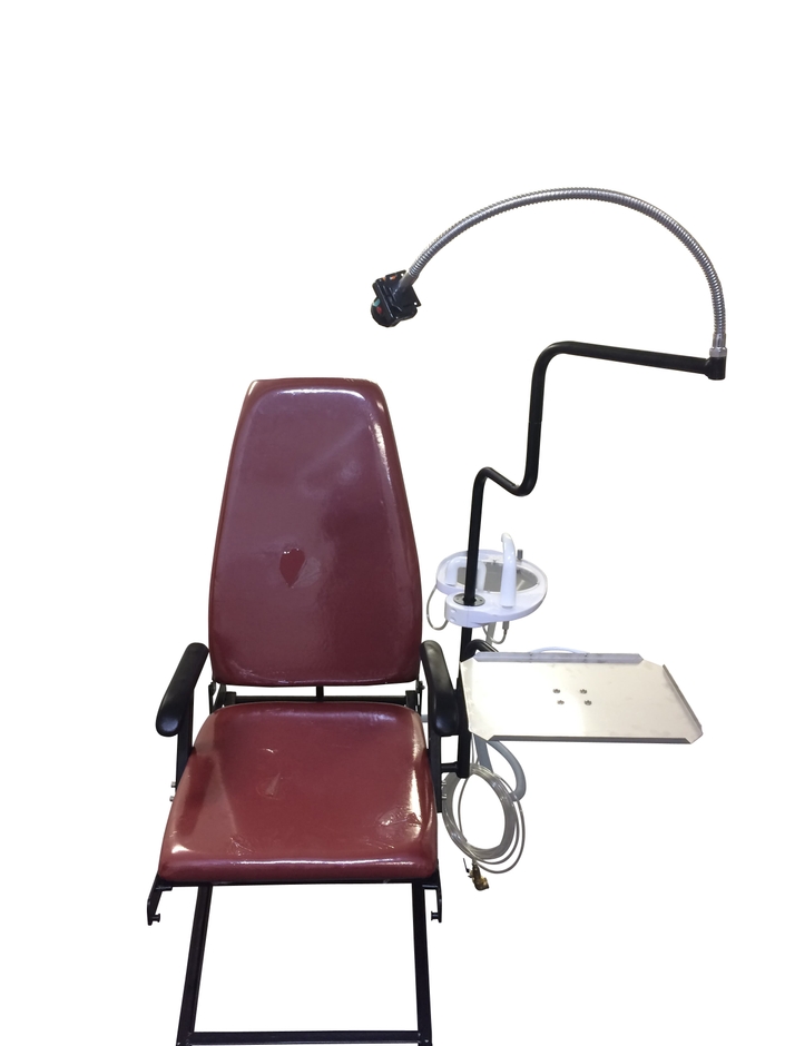 介護の現場での歯科治療や、歯科医院での入れ歯の調整などは高額な歯科用ユニット(治療椅子)によるタービン(歯を削るドリル)は不要でした。タービンやバキュームなど大掛かりな機能を外し、うがいだけができればいい、という要望からデンチャー専用椅子を日本初で発売することとなりました。価格は歯科業界では考えられない15万円(税別)(組み立て式送料別途)(医療機器ではありません)。