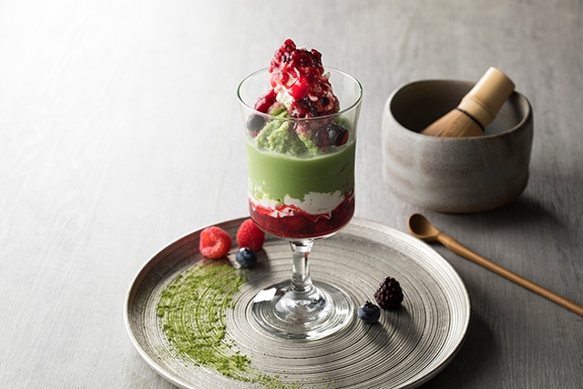 甘さ控えめの濃厚な味わいの抹茶スムージーに、ストロベリー、ブルーベリー、ラズベリーが入ったミックスベリーのソース、ホイップクリームをトッピングしました。抹茶の苦味とミックスベリーの酸味の相性の良さをお楽しみください。