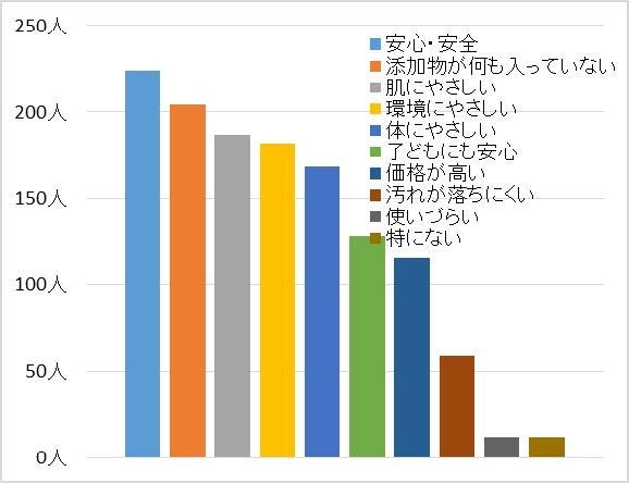 調査の結果、無添加商品の認知率は全体の92%を占めており、無添加の石けん・洗剤に対し「安心・安全」「添加物が何も入っていない」というイメージをもっている人が多いことが分かりました。
