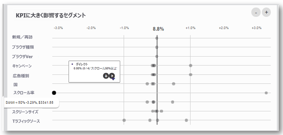 ページやフォーム内の特定の動作、行動順序および問題を特定し、改善した場合の効果を定量化します。これにより様々な仮説の中でも最も費用対効果の高い施策を発見し優先順位をつけることができます。