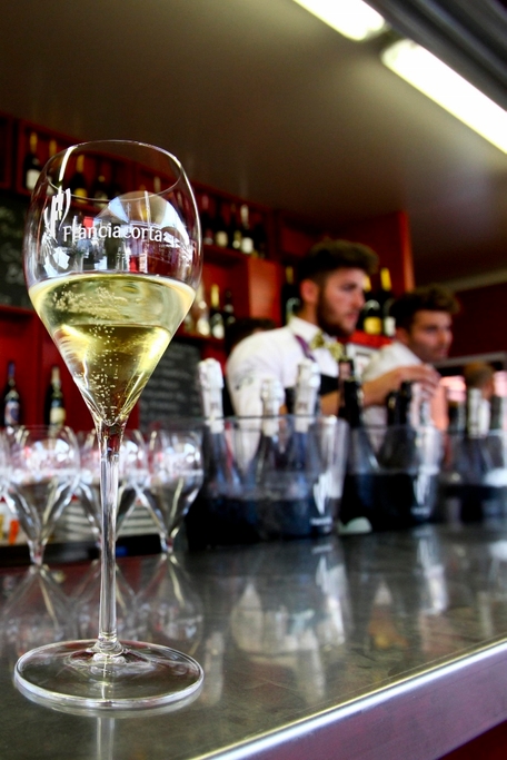 フランチャコルタは、各セレモニーの乾杯のグラスを満たすばかりで無く、展示会場エリアやデクマーノ通りのワイン・バーでもワインを提供する。