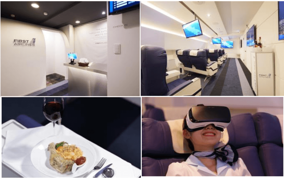 今回は、新たな取り組みとして、より世界観を体感いただくことを目的に、“世界初のヴァーチャル航空施設”の「FIRST AIRLINES」と連携を図り、実際にビジネスクラス・ファーストクラスのシートでの搭乗体験と、VRを利用した世界の観光地を巡る疑似体験をしていただきます。また、世界一周をモチーフとした特製料理をご用意し、食事しながらH.I.S.世界一周旅行デスクのスタッフよる説明会を実施し、世界一周旅行をより身近に感じていただき、実際の旅をご検討いただくことに繋がればと考えております。