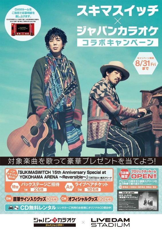 ジャパンレンタカー株式会社(本社:愛知県名古屋市、取締役社長:安井 博文)は、全国のジャパンカラオケにて、2018年にデビュー15周年を迎える音楽ユニット「スキマスイッチ」とのコラボキャンペーンをスタートいたします。