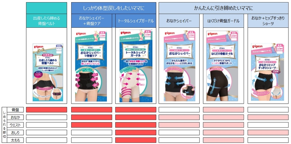 ■商品特長 -ママの産後の体型戻しのタイプに合わせて選びやすいラインアップに!