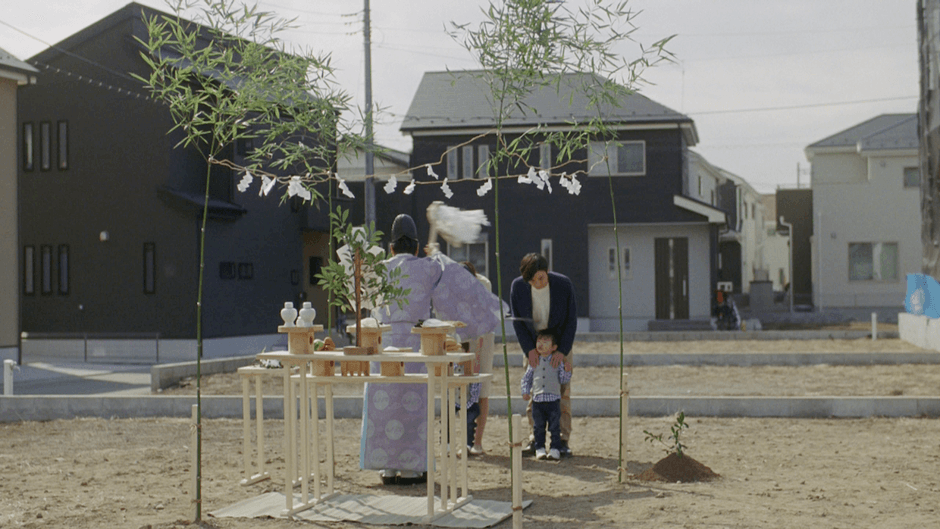 いよいよマイホームを建てることになった高橋さん演じる主人公。家族4人で地鎮祭に臨みながら、マイホーム建設に必要な金額に思いを馳せます。土地代、建物代、妻のこだわりの内装、インテリア……。積み重なるその金額の大きさに、夢のマイホームの夢は、実は悪夢!?と不安になり、心の中で「FPに相談したい!」と叫ぶ高橋さん。しかし、隣で完成を楽しみにする妻には、優しい笑みを向けるのでした。