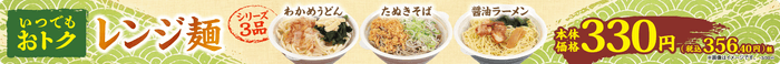 いつでもおトク!! レンジ麺 本体価格330円※シリーズ 9月24日(火)新発売