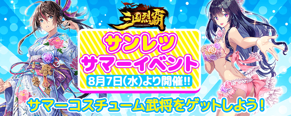 『三国烈覇』サマーコスチューム武将が獲得できる サマーイベント2019年8月7日(水)より開催!