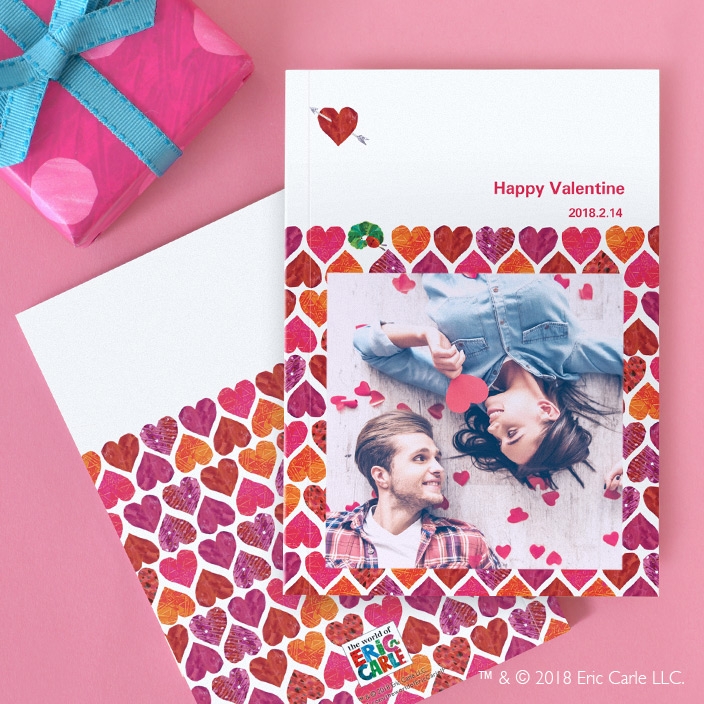 バレンタインに贈りたいフォトブック&ポストカード『はらぺこあおむし』エリック・カールの手書き風「ハート」デザイン登場