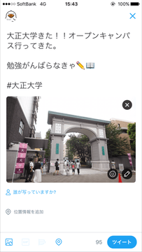 (3) 写真と一緒に、感想やコメントを書き、「#大正大学」をつけてツイートするだけ!