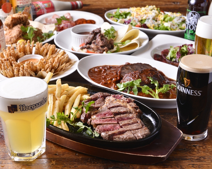 料理にもこだわり、創業以来愛され続けるオニオンフラワー、ギネスを使った牛肉のギネス煮、鉄板で熱々のステーキ&チップス、World Beer Pubという名の通り、世界各国の料理、ラムケバブ、ローマ風トリッパ、馬刺のカルパッチョなど、国内外問わず、飲食を楽しめるところも魅力のひとつです。
