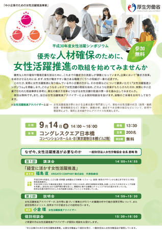 平成30年度「中小企業のための女性活躍推進事業」 (厚生労働省委託事業) 中小企業の成長のための『女性活躍推進シンポジウム』を開催