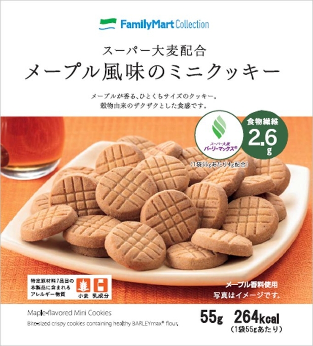 この度、株式会社ファミリーマート(本社:東京都港区、代表取締役社長:澤田 貴司)が展開する、プライベートブランドFamilyMart Collectionにて、2019年2月19日(火)より、日清シスコ株式会社と共同開発したスーパー大麦を使ったお菓子、「スーパー大麦配合 メープル風味のミニクッキー」を全国のファミリーマート約16,700店で発売いたします。
