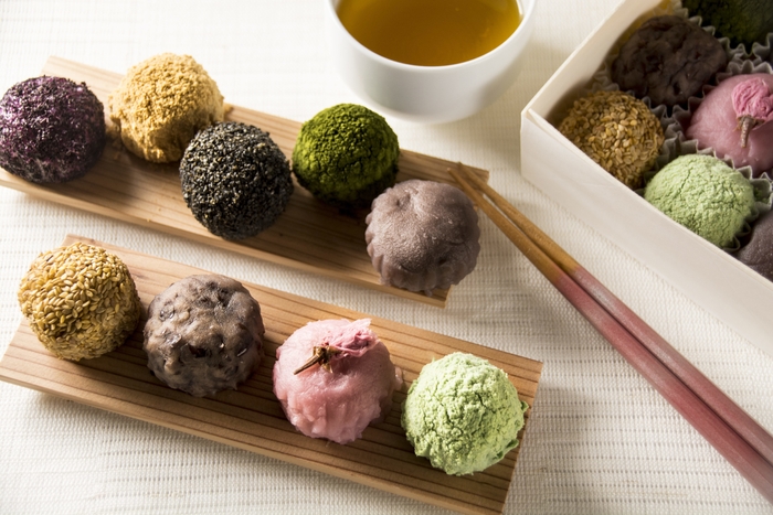 (こし餡、あずき糀つぶ餡、黄な粉、黒胡麻、金ゴマ、赤しそ、