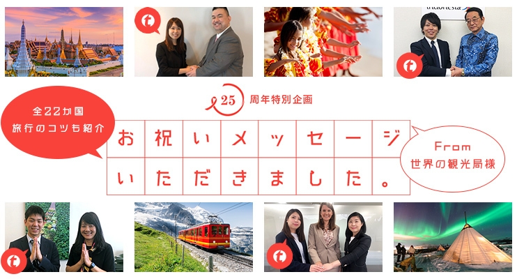 旅工房創業25周年記念キャンペーン第2弾 世界22か国の政府観光局代表からの祝福メッセージを公開