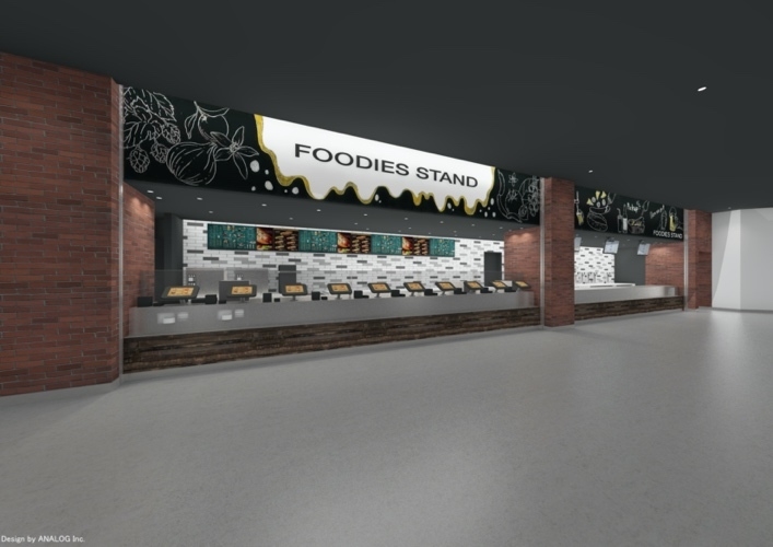 「ぴあアリーナMM」では、3形態の飲食サービスが提供されます。館内1階、2階、3階のホワイエには売店「FOODIES STAND(フーディーズスタンド)」が設置されます。また、館内3階には、当日の公演チケットをお持ちのお客様を対象に、収容1万人規模の国内施設としては初となる有料のホスピタリティラウンジ「CLUB 38(クラブサーティーエイト)」が常設されます。また、2階のペデストリアンデッキ上には、公演のない日も営業し一般の方もご利用いただける「ALL DAY CAFE & DINING The Blue Bell(オールデイカフェアンドダイニング ザ・ブルーベル)」がオープンしています。