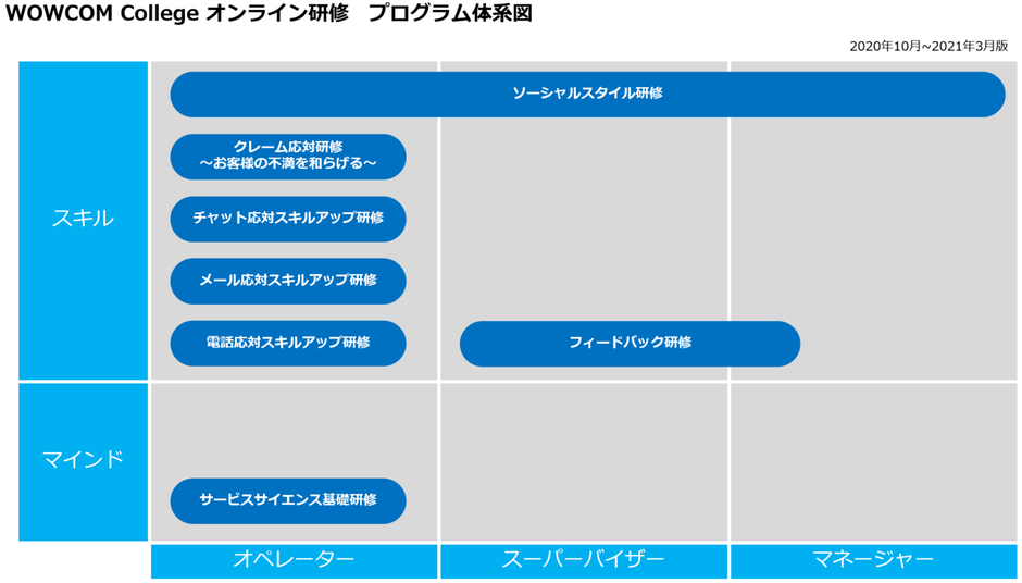 ・当社の品質管理機関「WOWCOM College」がこれまでコールセンター向けに対面で提供してきた研修プログラムを、Zoomを通じたライブ配信形式で提供するサービス