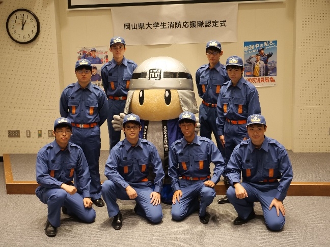 岡山県は大学生の消防防災に関する理解促進と若者の消防に対するイメージアップを目的として2015年度より消防応援隊の認定を行っており、本学は本年度3校目の認定になります。