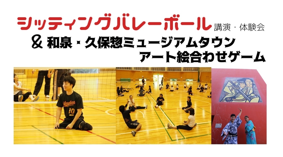 和泉市は、2019年11月30日(土)に、桃山学院大学にて、2020年東京パラリンピックの種目にもなっている、シッティングバレーボールの講演・体験会&和泉・久保惣ミュージアムタウン「アート絵合わせゲーム」の開催を決定いたしました。日本代表候補である嵯峨根 望(さがね のぞむ)選手と一緒に親子でシッティングバレーボールを体験してもらいながら、後半には「アートがあふれるまち」をコンセプトに誕生した街中アート作品を身近に感じてもらえるようなゲームも開催します。シッティングバレーボールとアートを通じて和泉市の魅力を楽しく発信します。参加者にはオリジナルグッズのプレゼントもあります。