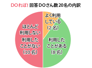 家事代行サービスを利用したことがあるか、インタビュー対象者20名に聞いたところ、「よく利用している」と「利用したことがある」を合わせた半数の人の経験がありました(図1)。