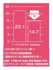 太く安定感のある大径のエアタイヤは、街中のデコボコ道や段差もすっと乗り越えることができます※2。また、パルスキップのエアタイヤは、一般的なノーパンクタイヤに比べて33.5%も振動を軽減。乗っている赤ちゃんも心地よい、快適なお出かけを実現します。
