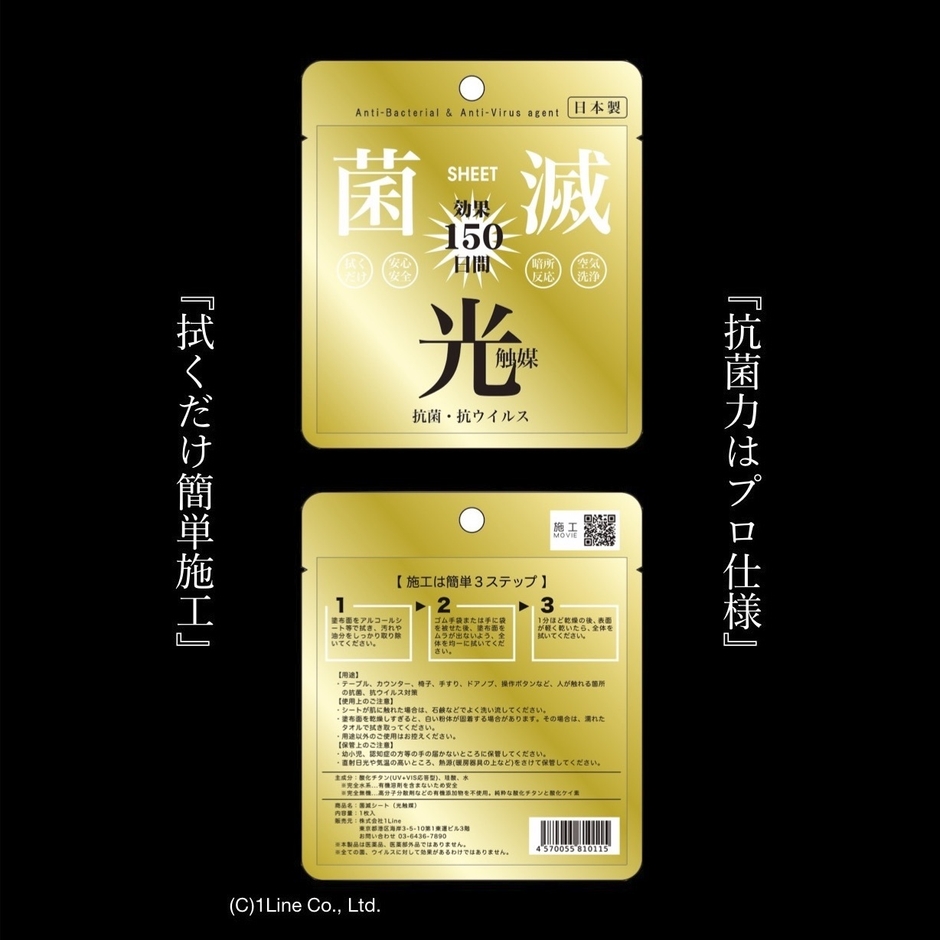 株式会社1Line(代表取締役:眞鍋 豊洋、本社:東京都台東区)は、拭くだけで誰でも簡単にプロ仕様の抗菌施工ができる「菌滅シート」(2,200円・税10%込/2,000円・税抜)を商品化、2020年8月10日(月)に発売を開始します。