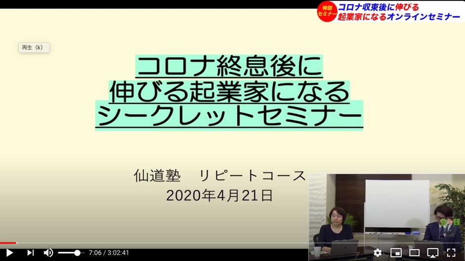 【コロナ終息後に伸びる起業家になるシークレットセミナー】 仙道 達也、5/1YouTubeライブ公開後4,000名が視聴