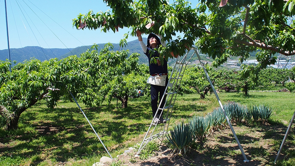 山梨県春日居地区の農園において桃の栽培を行いながら、実践的なスマート農業の推進に取り組みます。