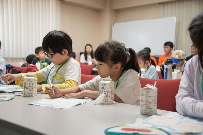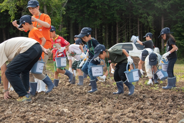 協業第一弾として、2024年6月8日(土)に那須千本松牧場でSMBCグループが主催する体験プログラム「自然体験」を実施いたしました。都内の学童に通う小学生 20名を招待し、牧場の広大な畑や牛舎の見学、どうぶつ触れ合い等を通じて、貴重な自然体験の機会を提供しました。また、ホウライが行う循環型酪農の一工程で、牧草地の石拾いや肥料撒きの体験も行い、参加した子どもたちからは、「また来たい」「初めての体験で楽しかった」等多くの喜びの声が寄せられました。