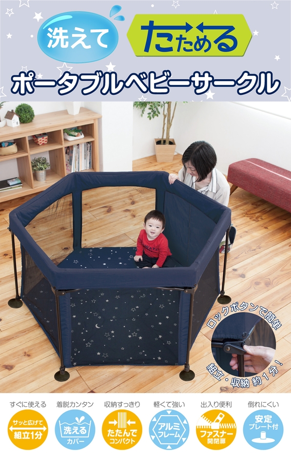 『洗えてたためるポータブルベビーサークル』の特長