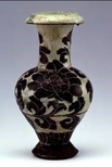 白地黒掻落緑釉牡丹文瓶 北宋 磁州窯